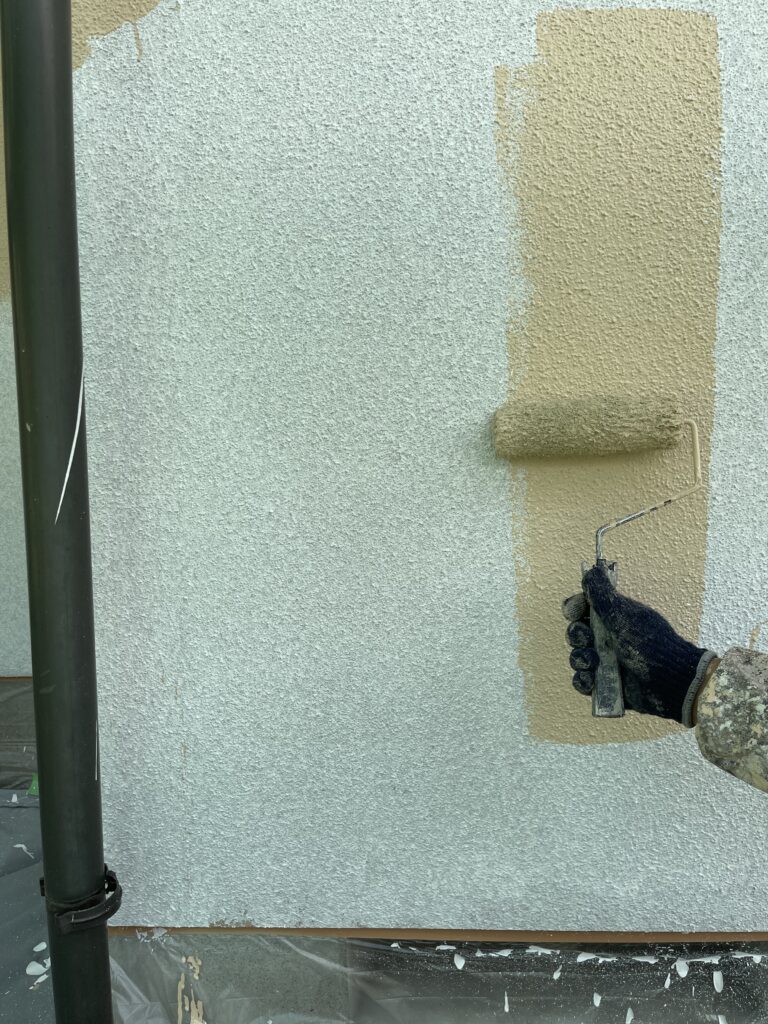 外壁にローラーで塗装作業中|外壁塗装 屋根 塗装 埼玉」
