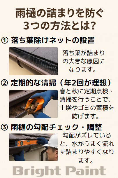雨樋の詰まりを防ぐ3つの方法とは?|外壁塗装 屋根塗装|埼玉北エリアの外壁屋根施工はブライトペイントへ
